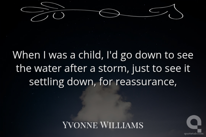 When I was a child, I'd go down to see the water after a storm, just to see it settling down, for reassurance, Yvonne Williams