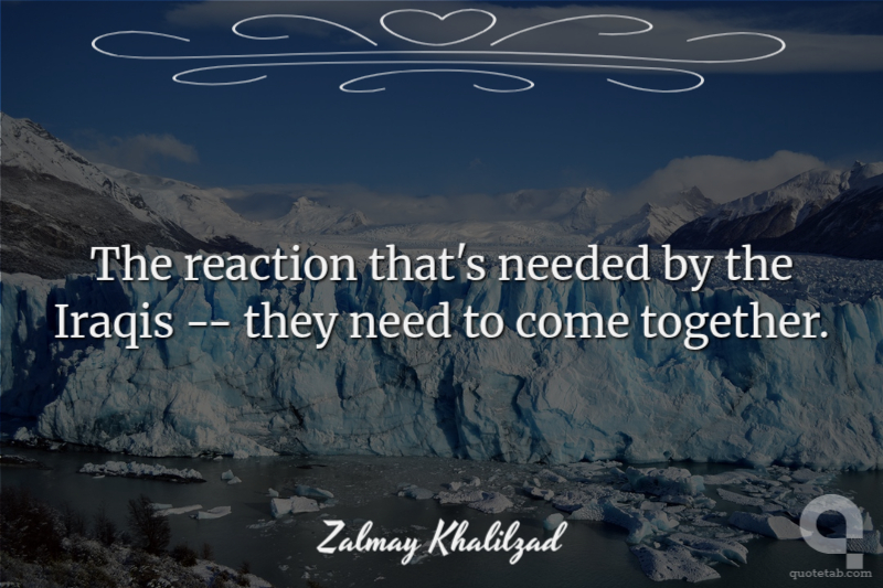 The reaction that's needed by the Iraqis -- they need to come together. Zalmay Khalilzad