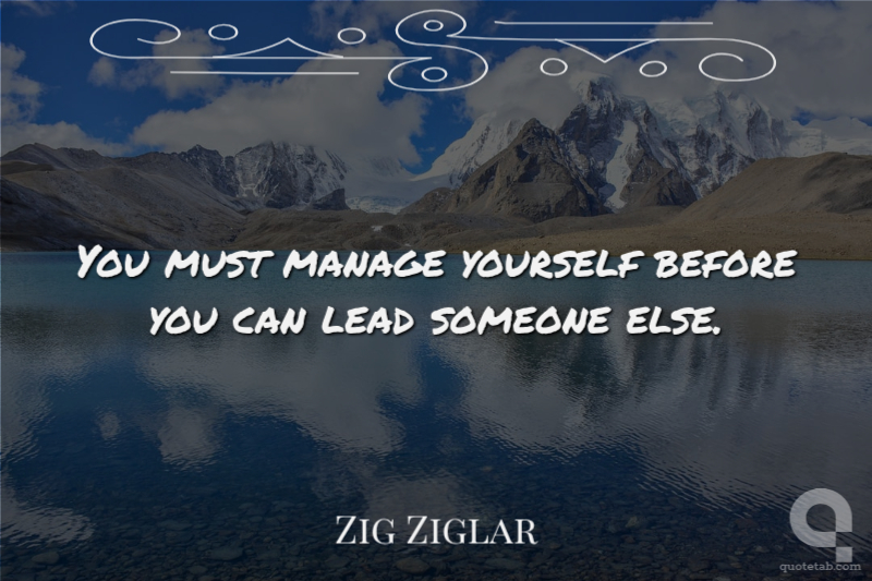 You must manage yourself before you can lead someone else. Zig Ziglar